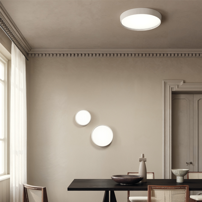 A disc of light, a pure form subtly extending forward, conceals a secret within its finely crafted glass-bringing light to life with shifting vibrancy as the viewing angle changes. Both essential and dynamic, it is a perfectly functional object, elevated by meticulous attention to detail.