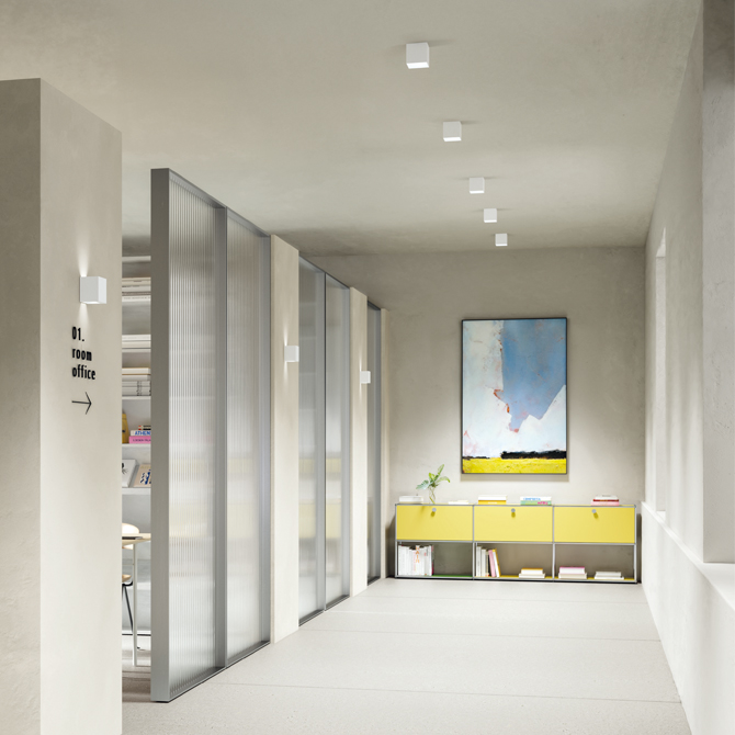 A refined, essential geometry houses a sophisticated lighting system, where light gently reflects off secondary surfaces to illuminate the space. Combining formal simplicity with soft, ergonomic, and efficient performance, it offers an innovative take on a classic concept.
