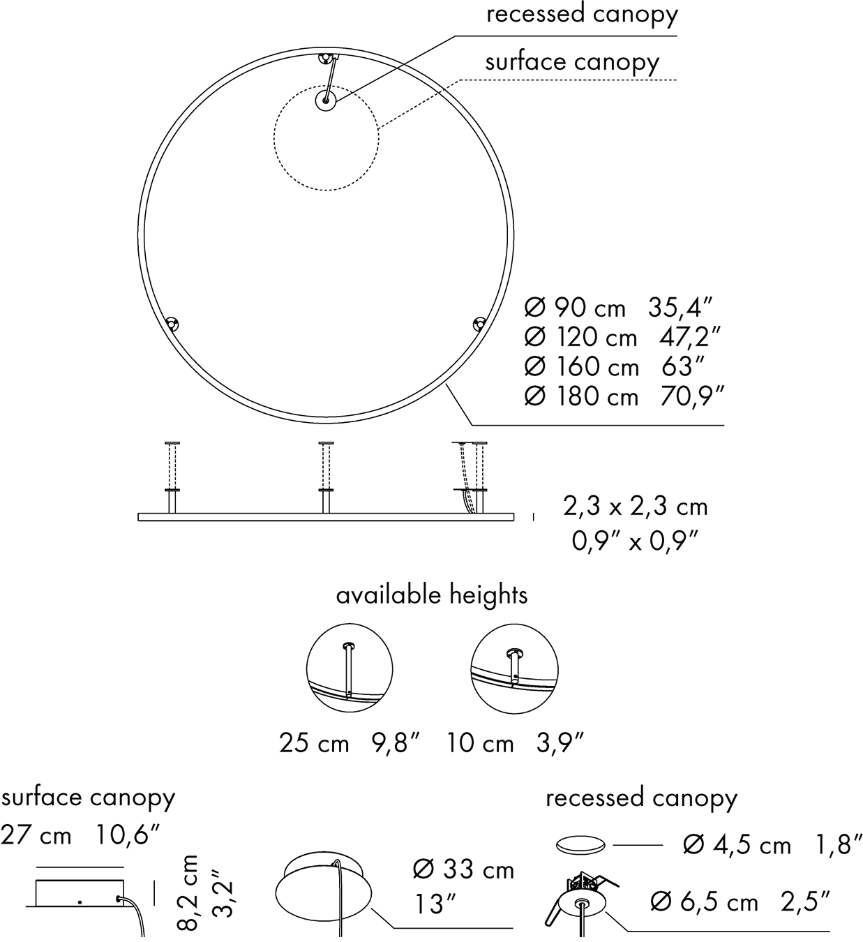 | Ø180cm 70,9" | Surface canopy 153W Recessed canopy 123W 10315lm |
